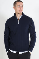 Carlo Cotton half zip knit Sky Captain