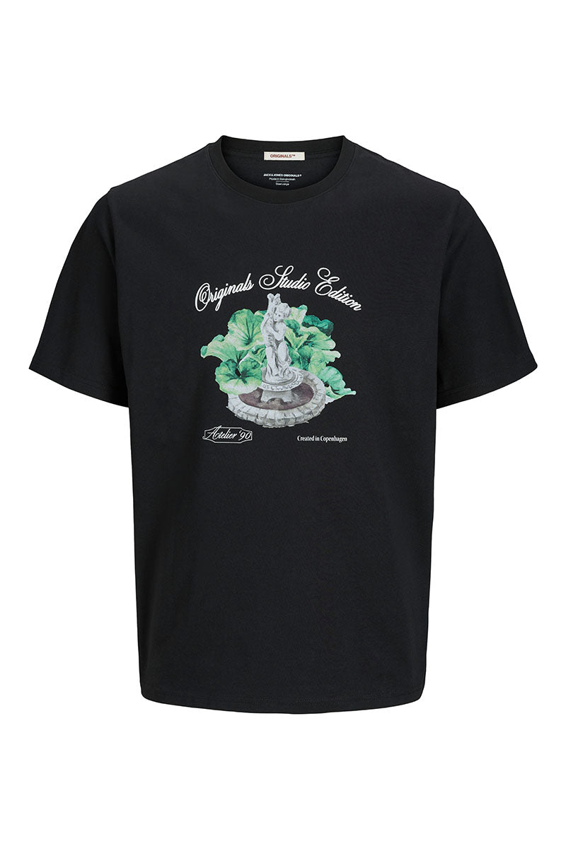 - Black t-shirt in a relaxed fit