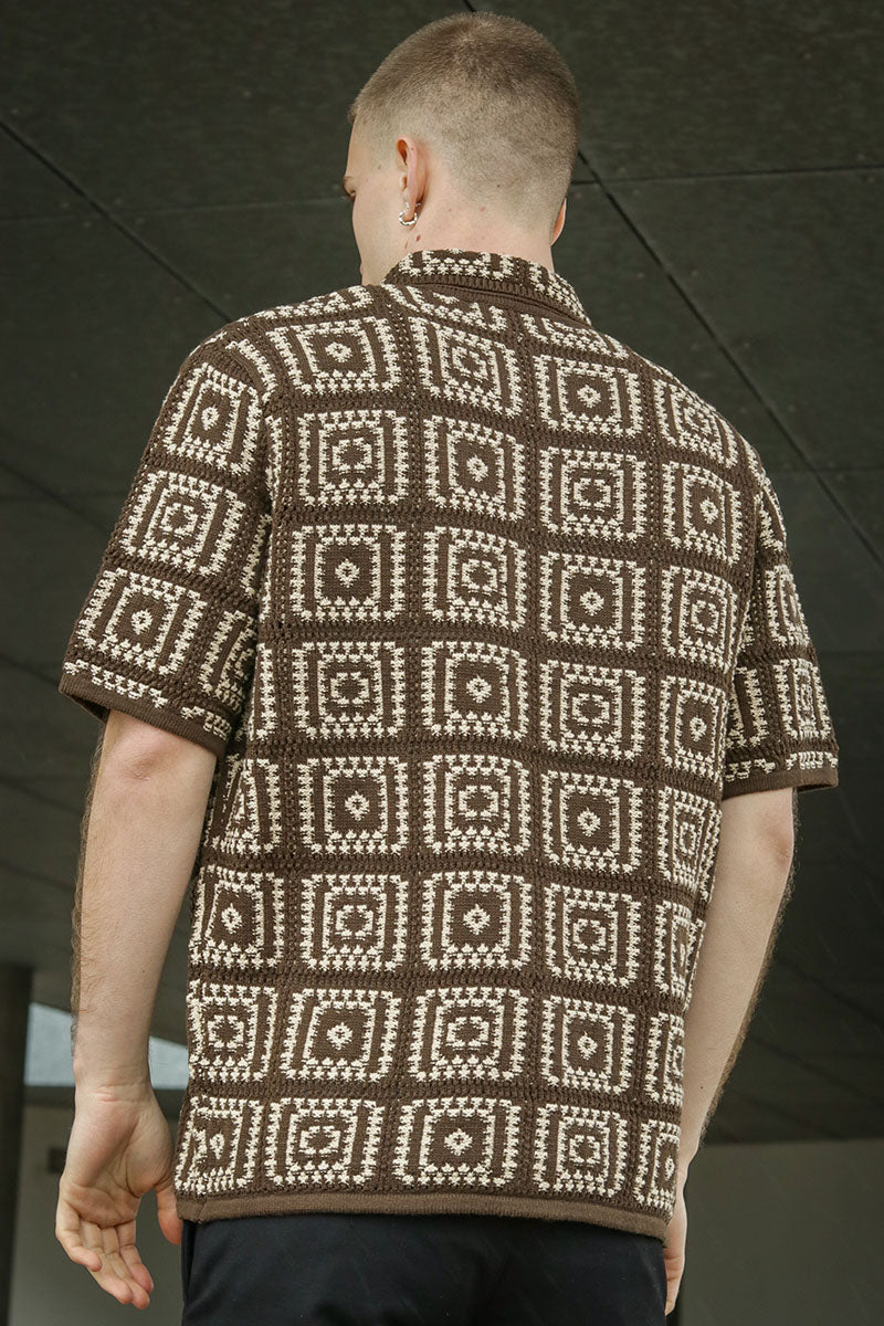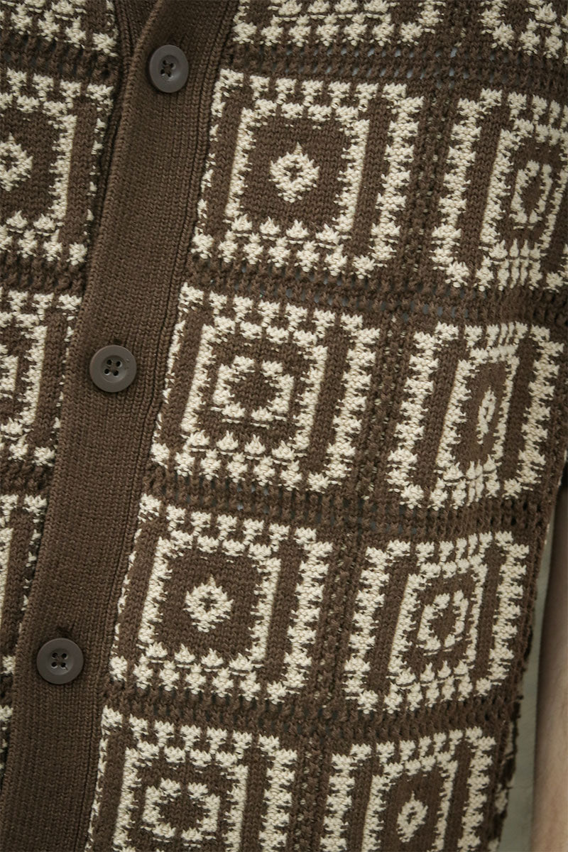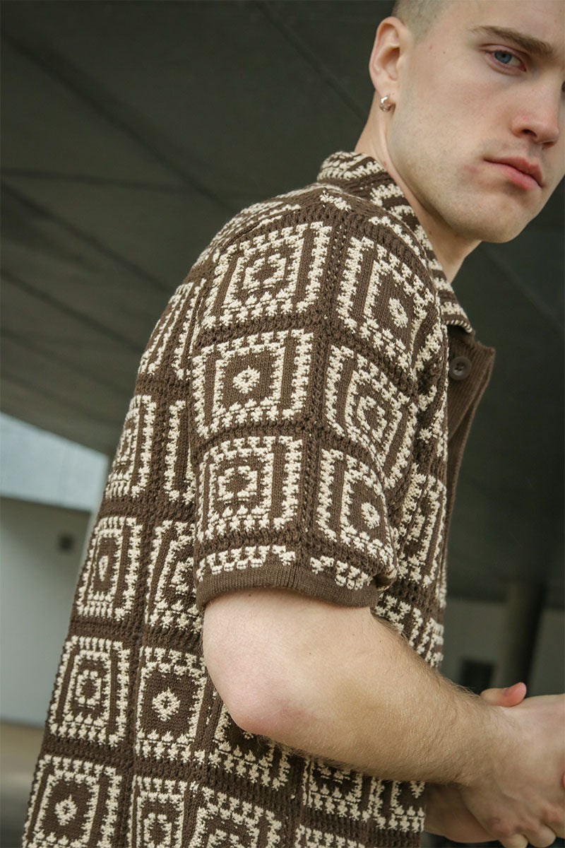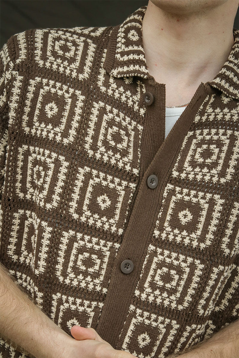 - Short-sleeved knitted polo with pattern