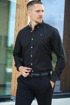 Oxford Stretch Plain L/S Black