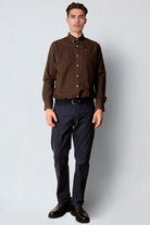 Clean Cut Copenhagen Oxford Stretch Plain L/S Dark Brown Melange