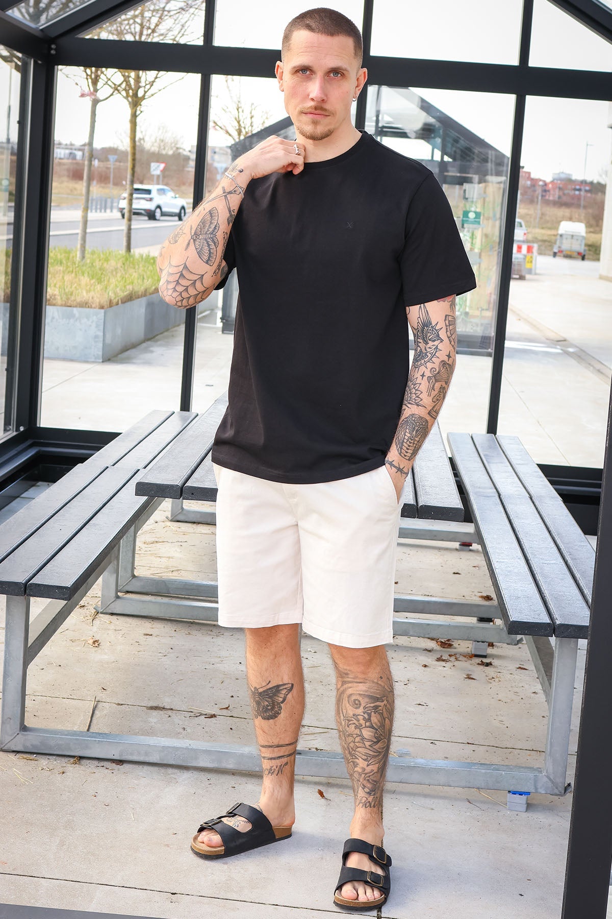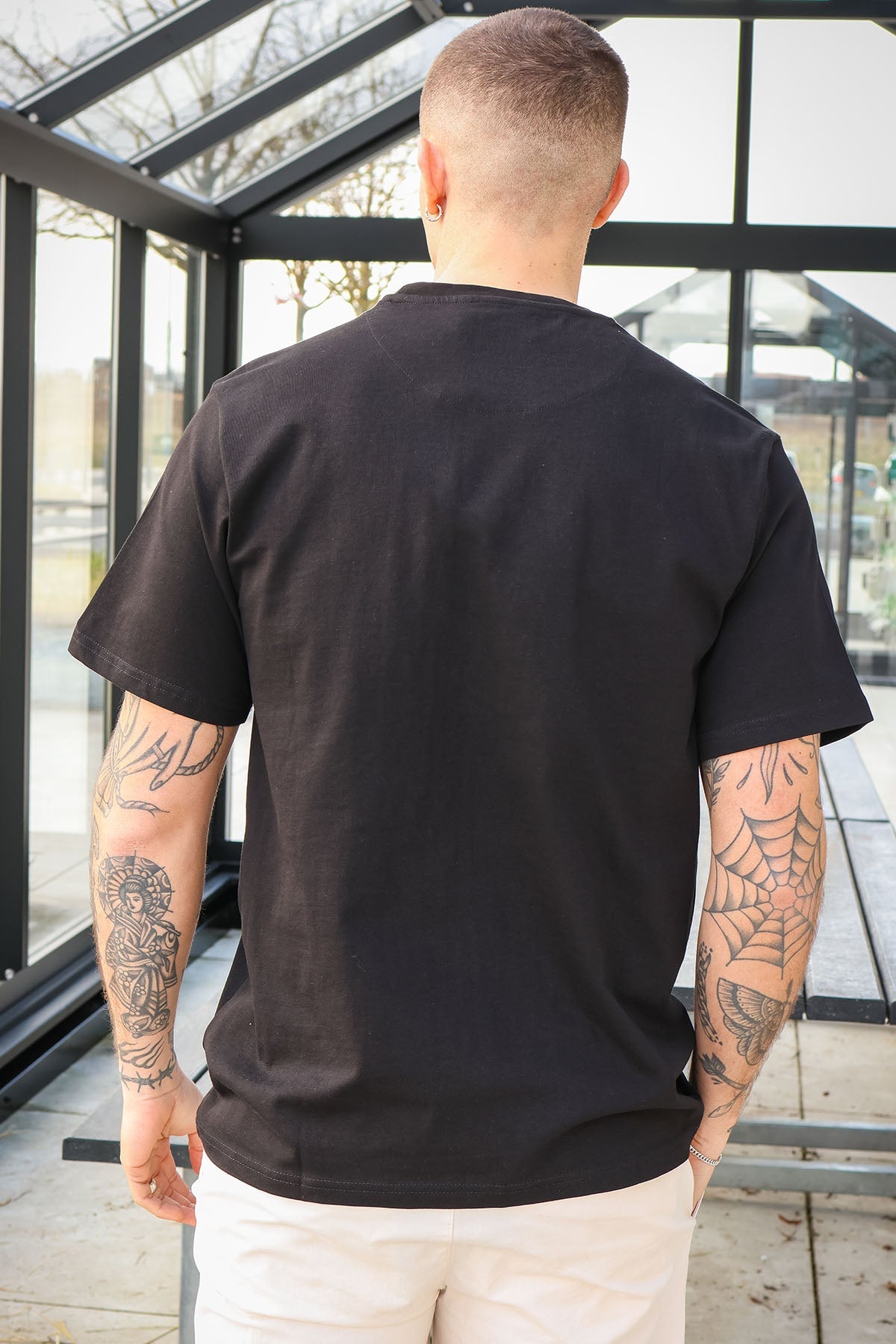 - Black t-shirt in regular fit