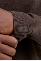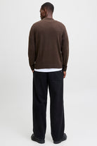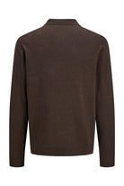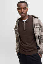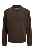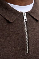 - Brown knit sweater with polo collar and half zip