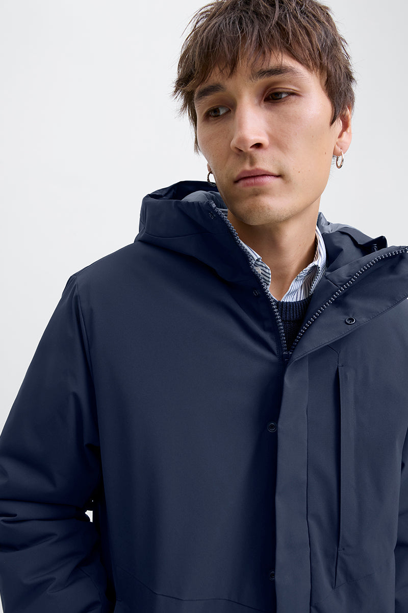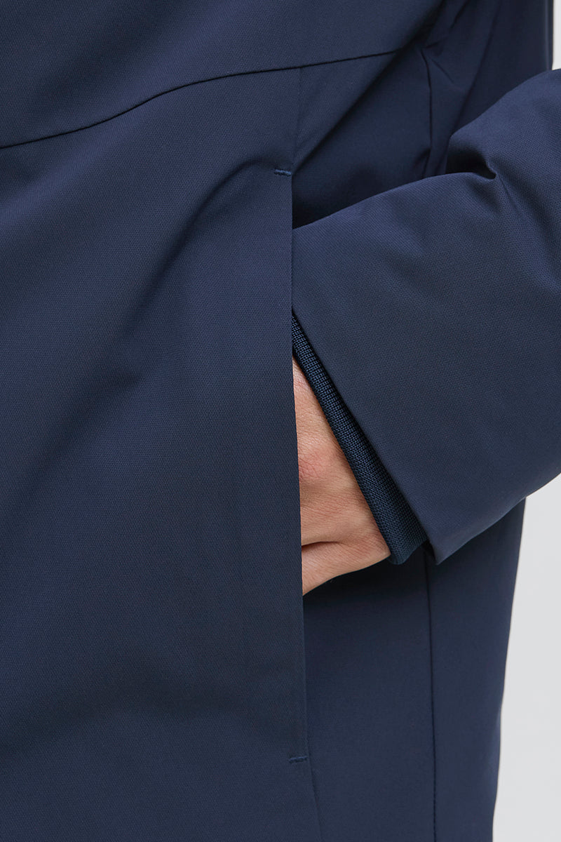 - The jacket has 2 slanted front pockets and a chest pocket. It is wind- and water-repellent