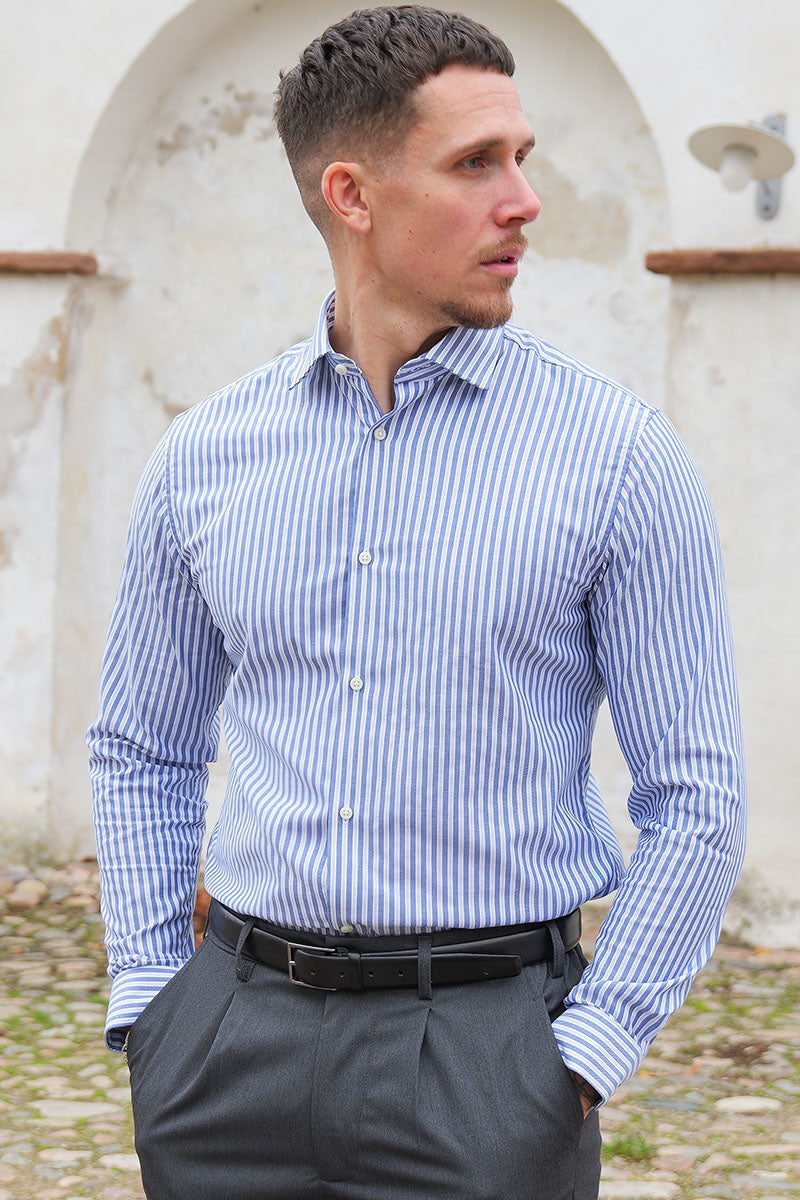 - Striped long‑sleeve shirt in slim fit