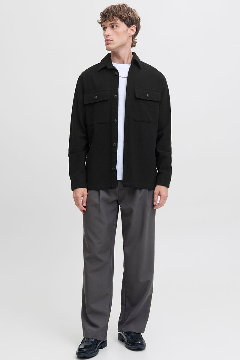 Jack & Jones Rayle Melange Solid LS Overshirt Black Beauty