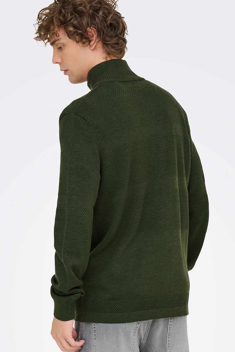 ONLY & SONS Malik Regular Zip Cardigan Knit Olive Night
