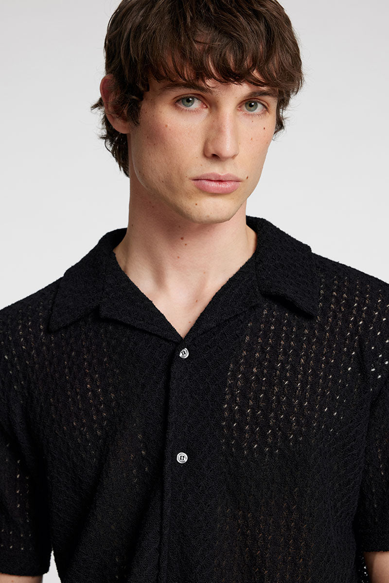 Bane Relax Fit Jacqaurd Shirt SS Black