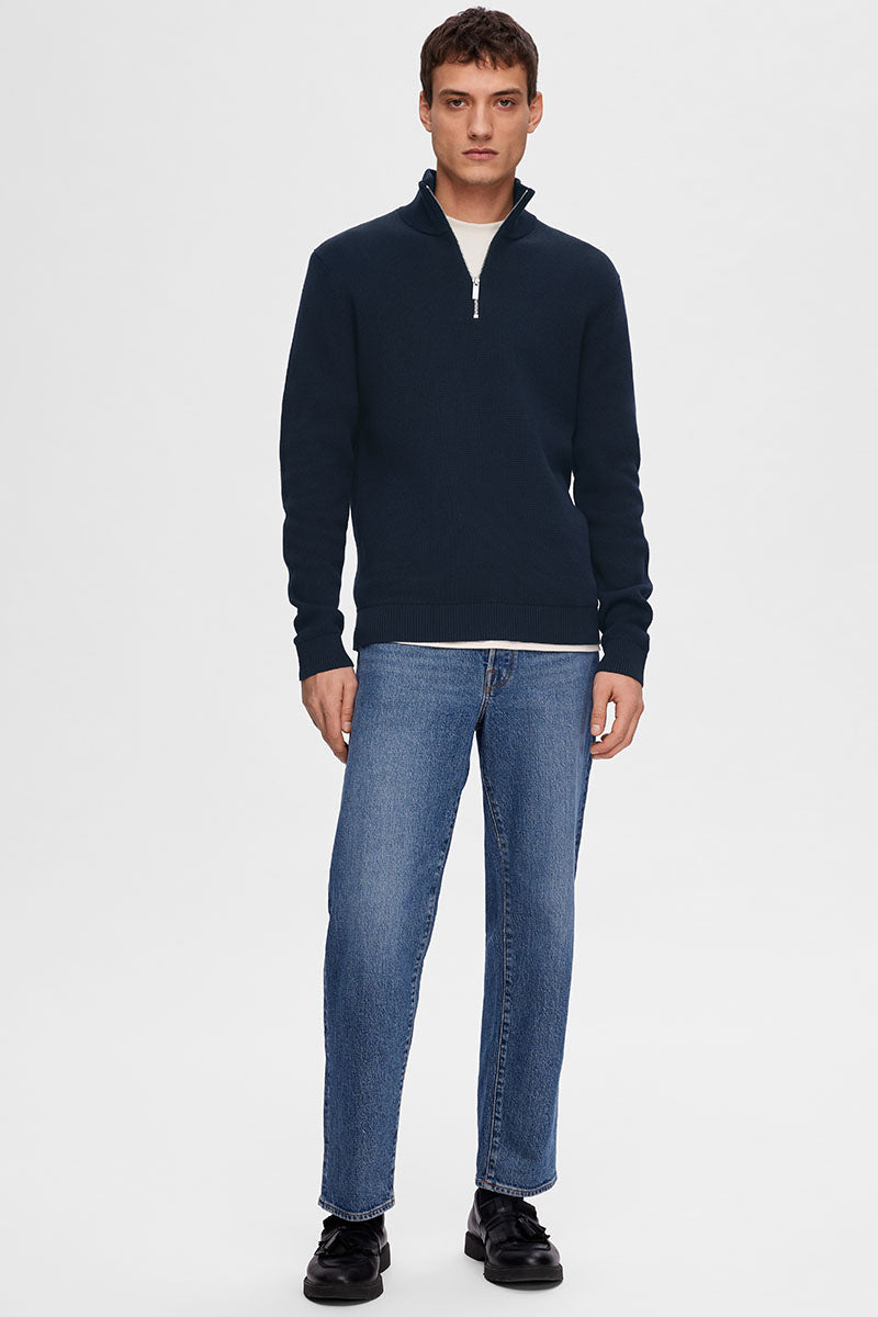 Selected Dane LS Structure Knit Half Zip Sky Captain