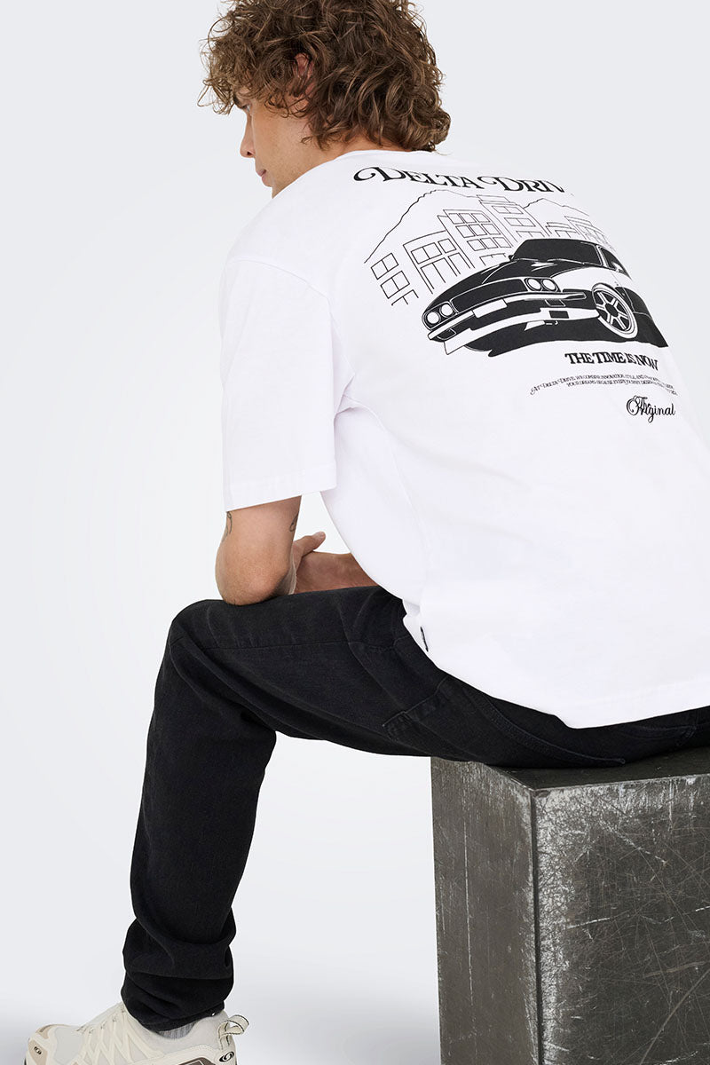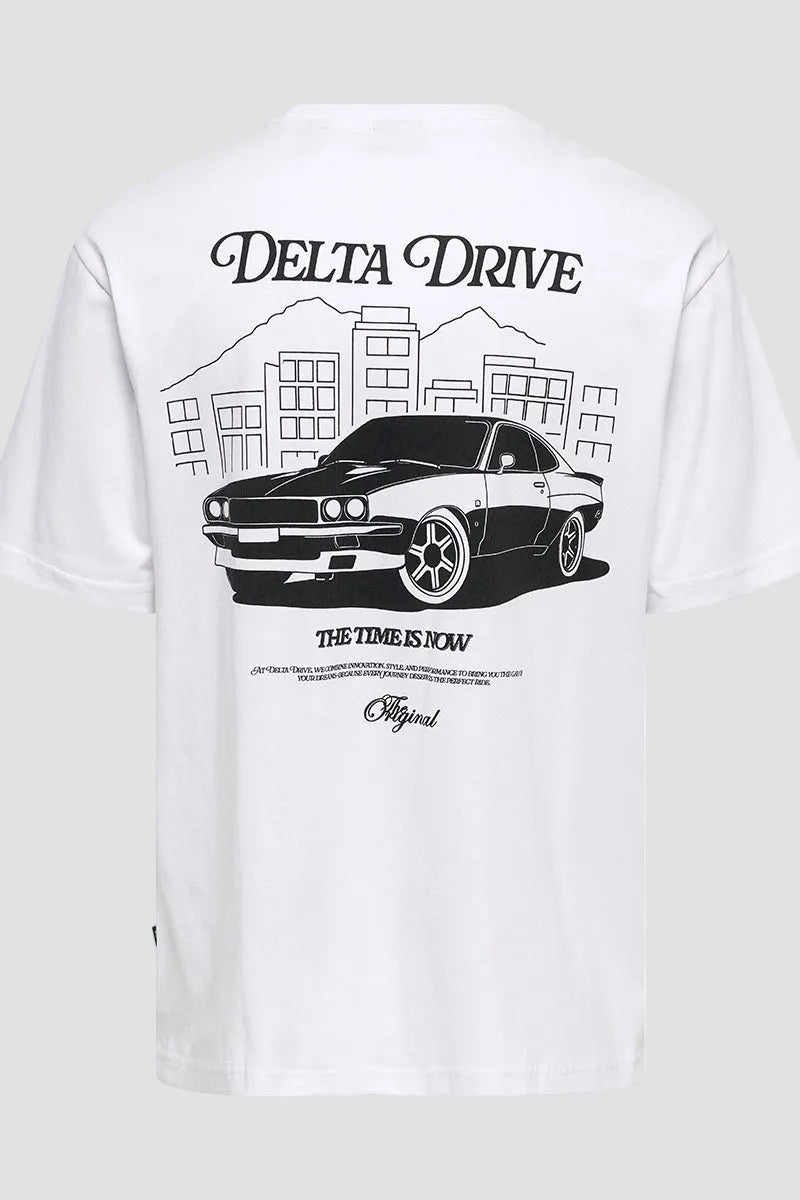ONLY & SONS Nathan Backprint Relaxed Fit Tee Bright White Delta Drive