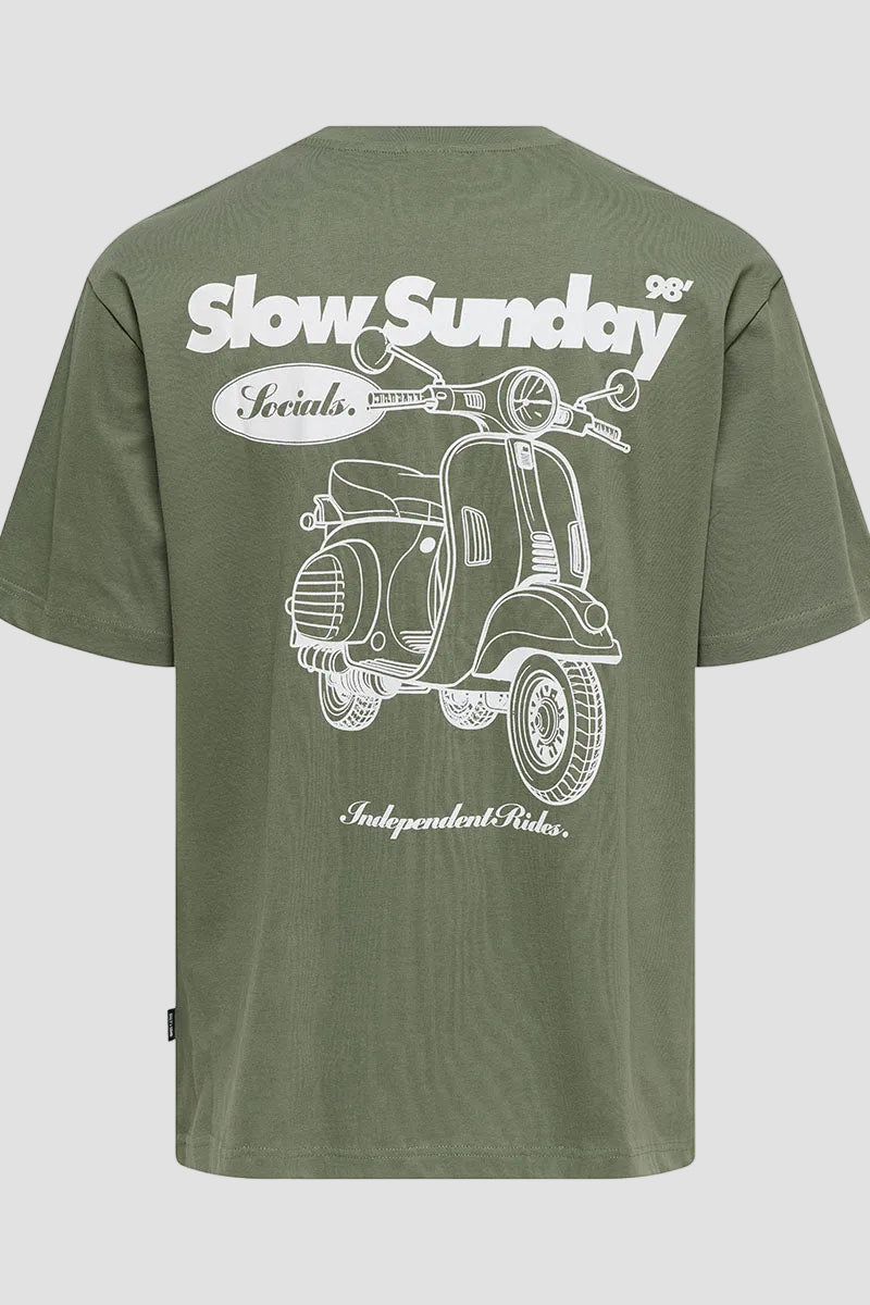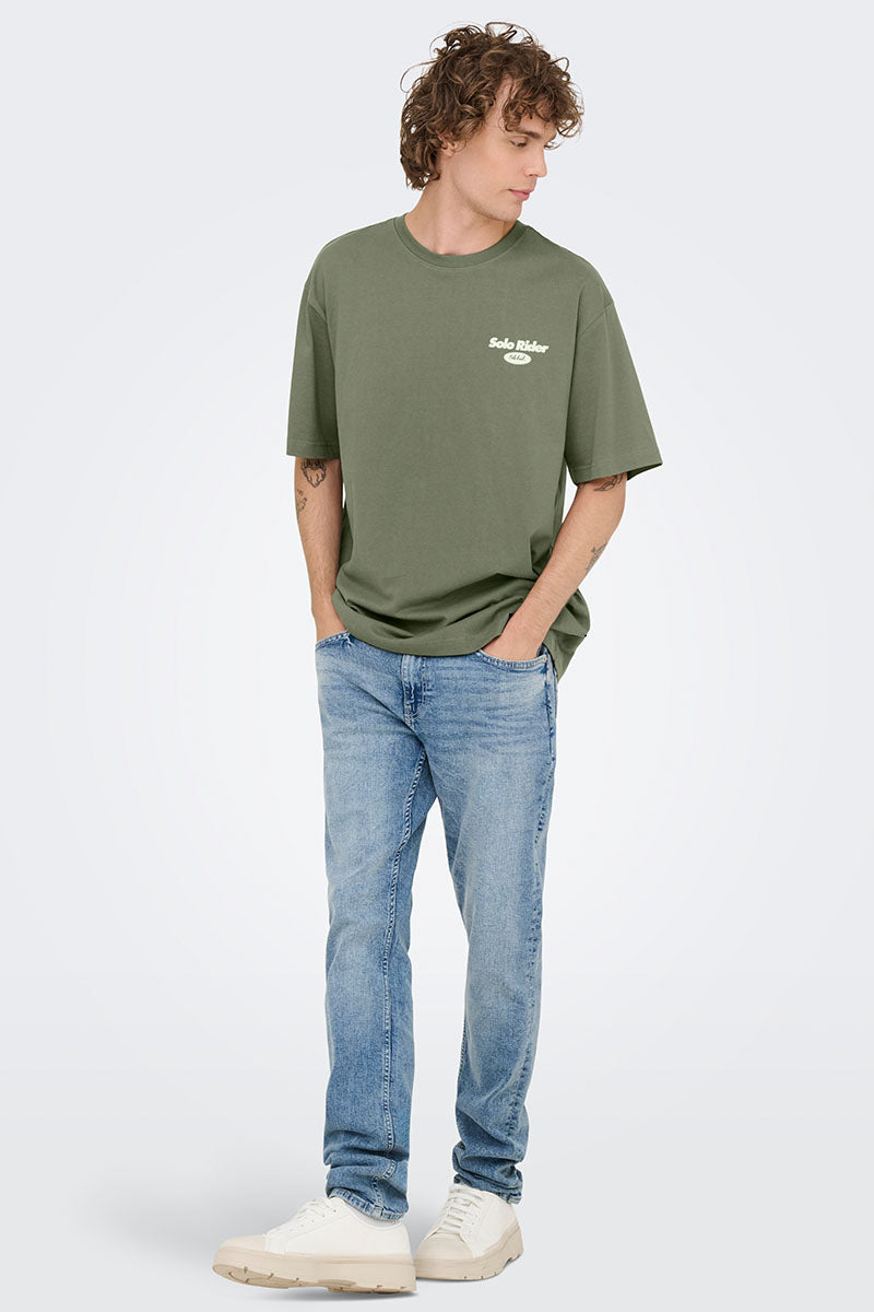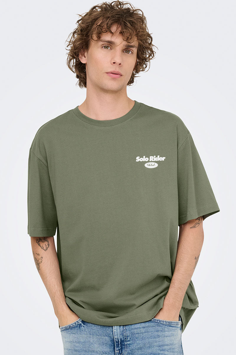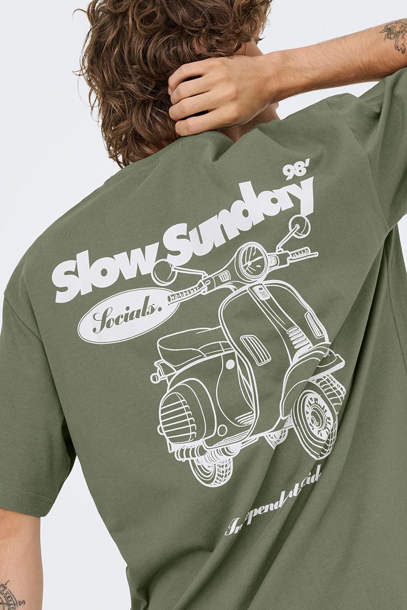 ONLY & SONS Nathan Backprint Relaxed Fit Tee Agave Green Slow