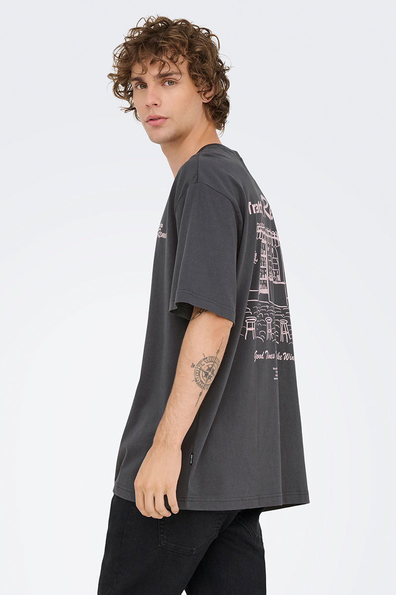 ONLY & SONS Nathan Backprint Relaxed Fit Tee Black Coffee
