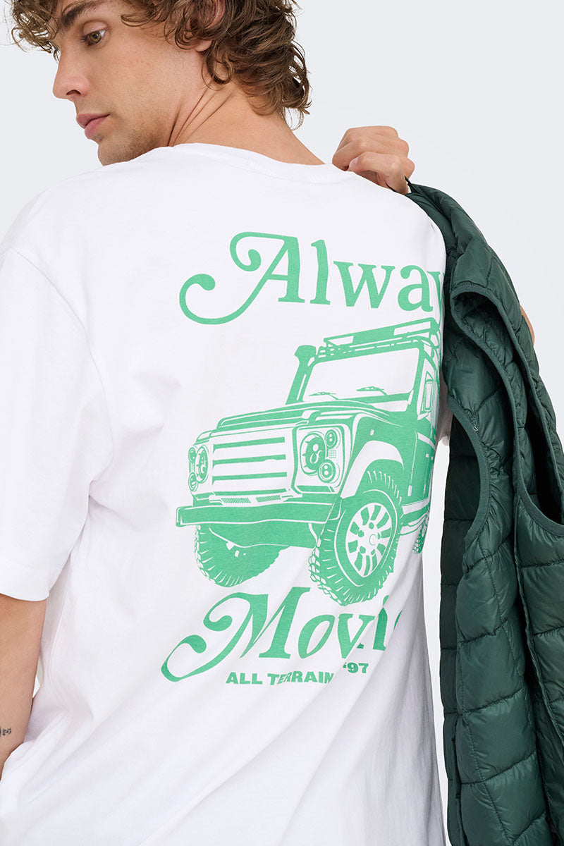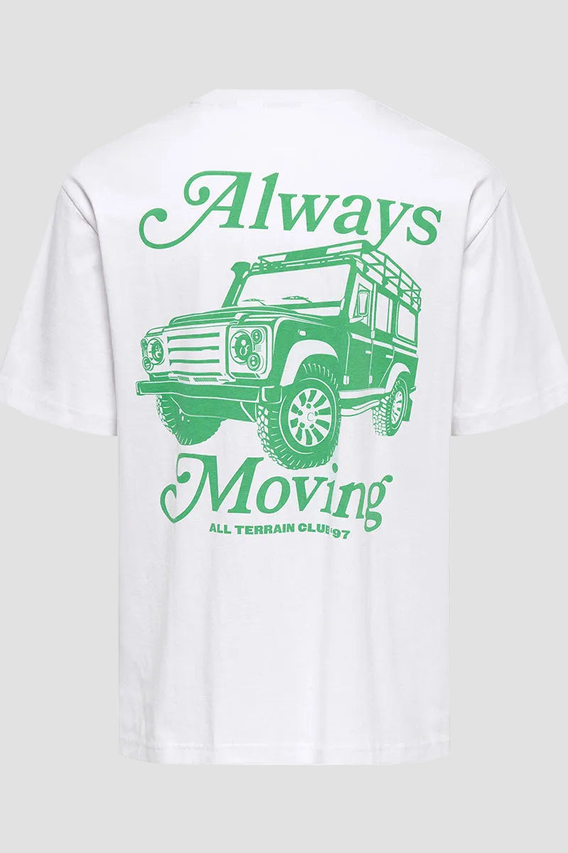 ONLY & SONS Nathan Backprint Relaxed Fit Tee Bright White Always Moving