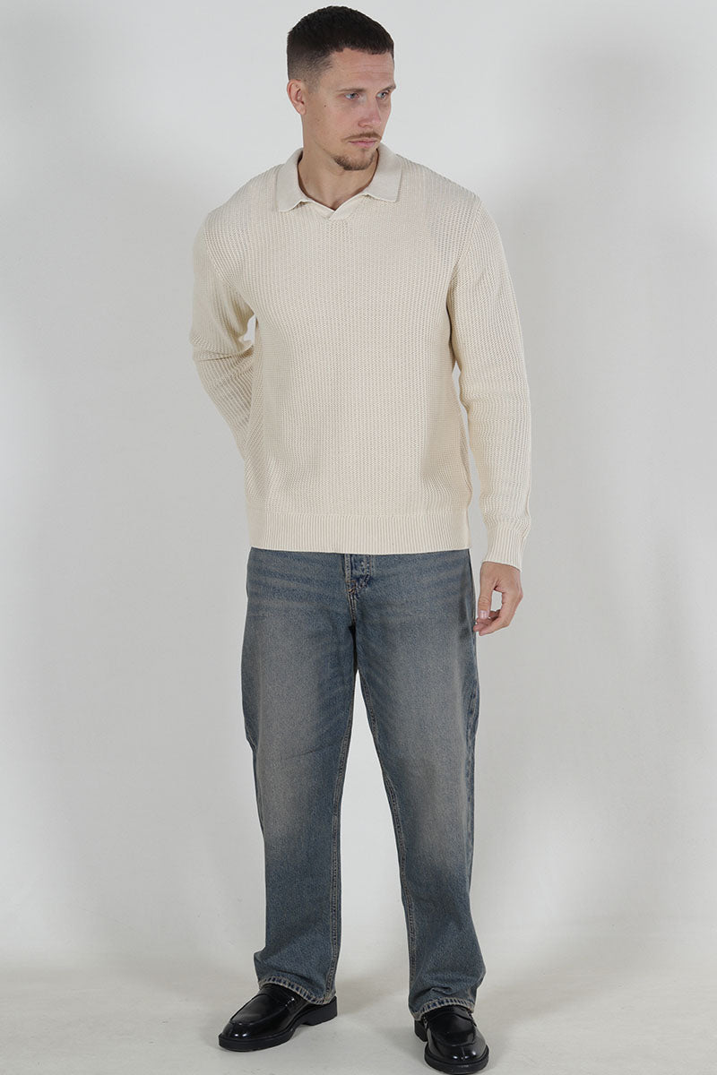 Relaxed Fit Structered Knit Polo Summer Sand