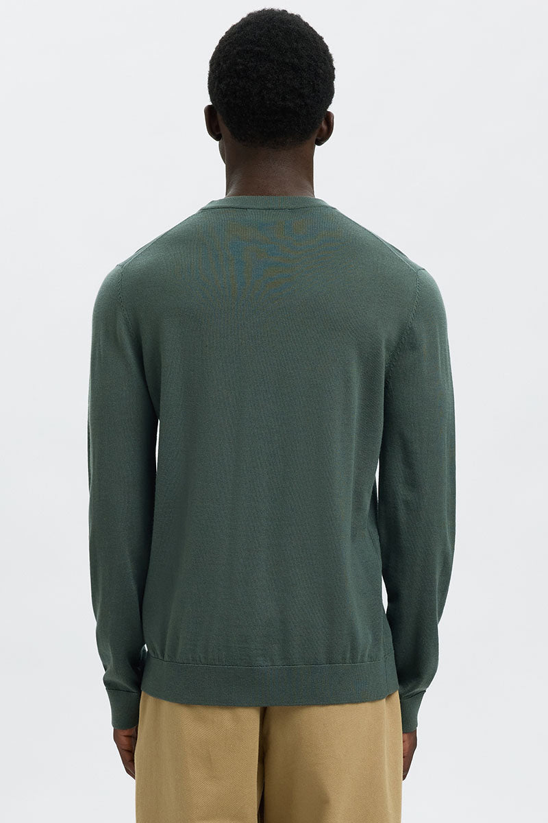 Selected Tray LS Merino Knit Crew Neck Deep Forest