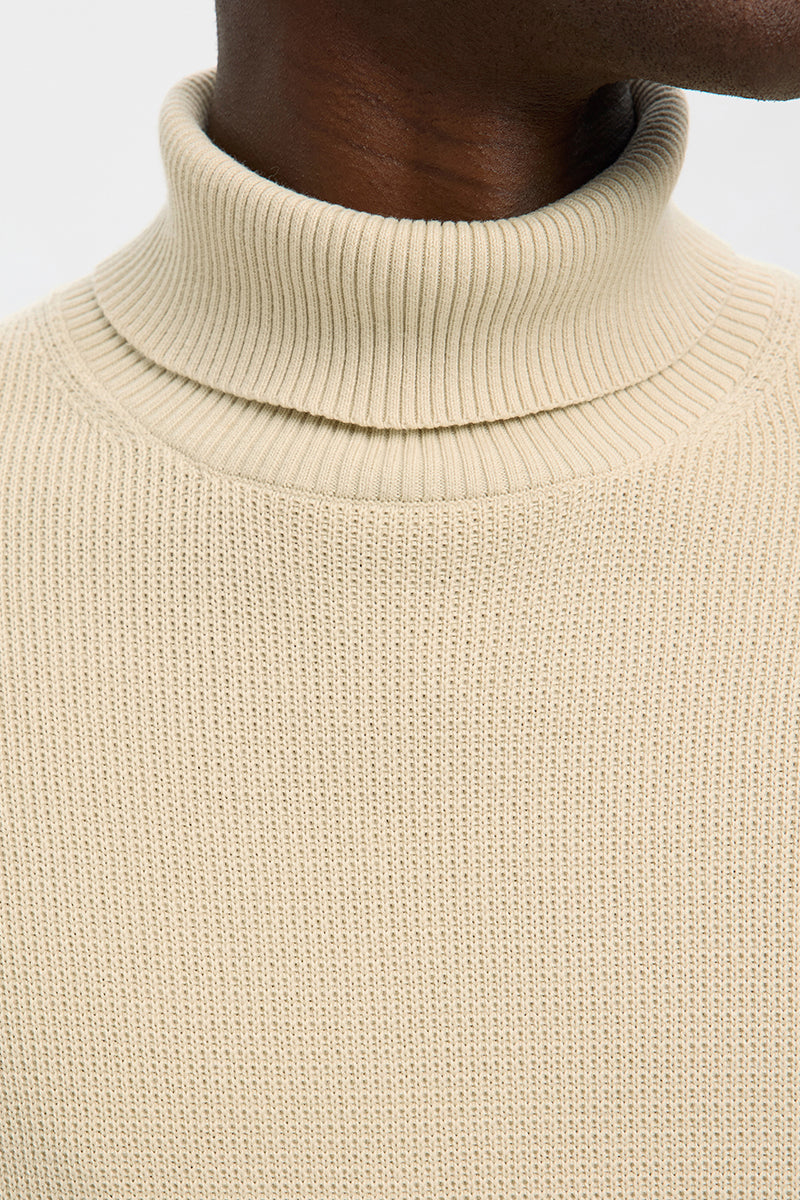 Selected Dane LS Structure Knit Roll Neck Oatmeal
