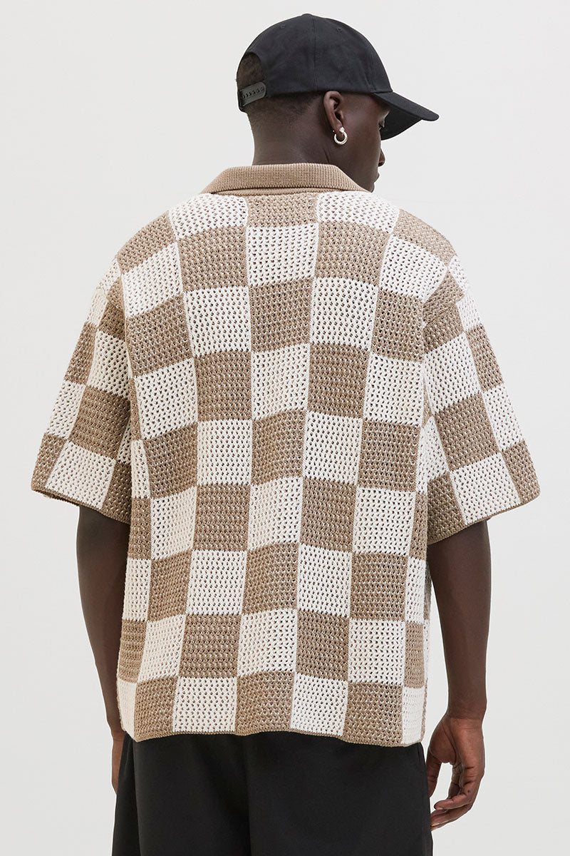 Athletico Loose Fit Crochet Polo Shirt SS Desert Taupe