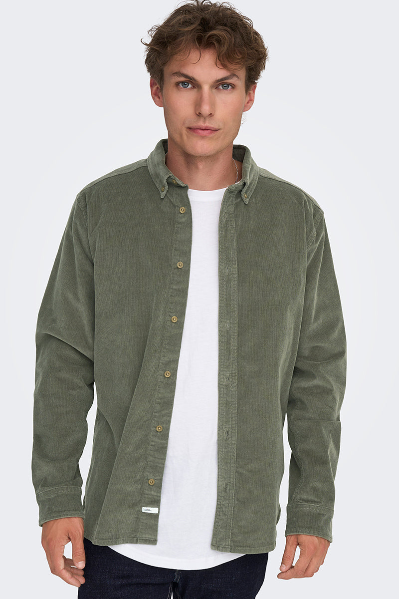 ONLY & SONS Michael Regular Fit Stretch Cord Shirt LS Otter
