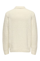 - The sweater features a knitted collar and 3 buttons at the top. Additionally, it has ribbing at the hem and sleeves