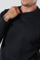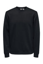 • The sweatshirt has ribbing at the collar, cuffs, and hem.