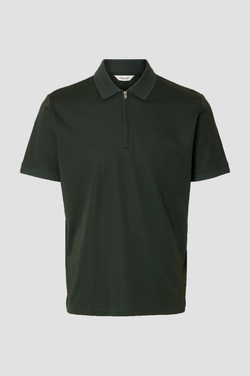 Selected Fave Zip Polo SS Deep Forest
