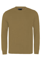 - Beige long‑sleeve knit sweater in regular fit