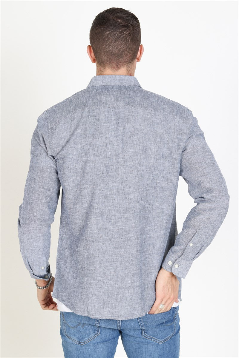 Caiden LS Linen Shirt Dress Blues