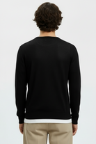 This black crew neck sweater offers a timeless and comfortable choice for everyday wear. Designed with a regular fit, it features long sleeves and ribbed cuffs that add subtle detail while ensuring a cozy feel. The blend of cotton and organic cotton gives it a soft texture and reflects a commitment to sustainability through natural materials.