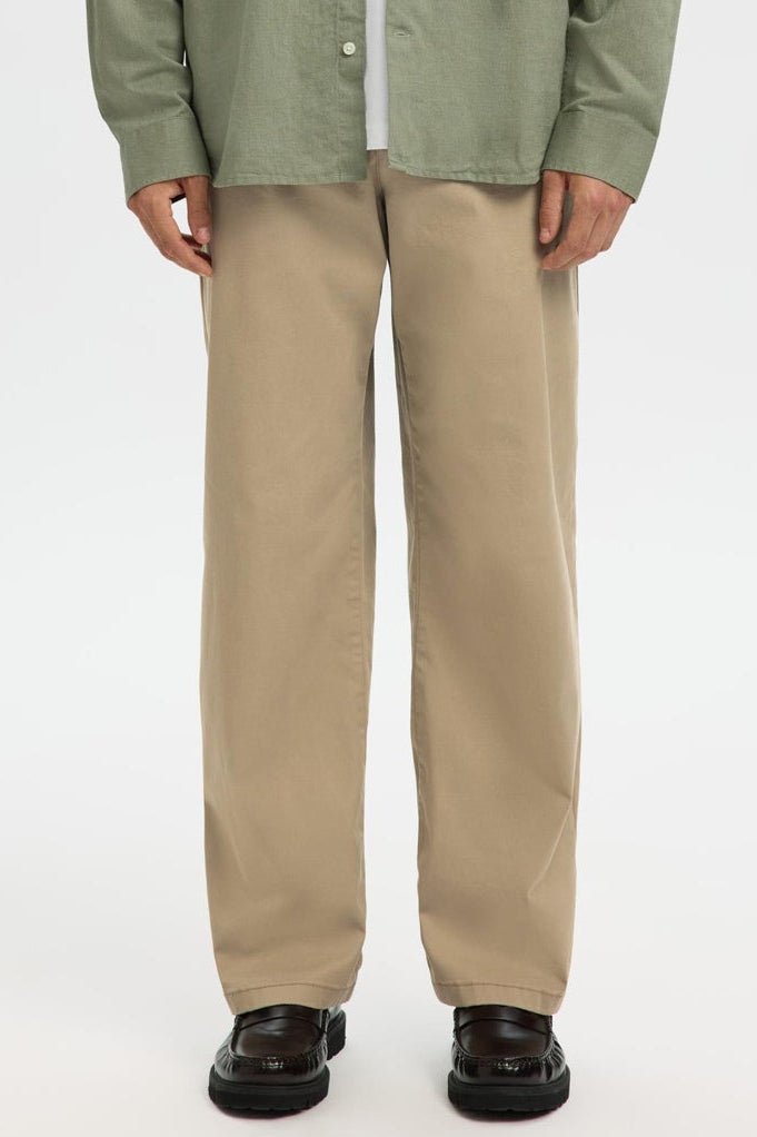 These Loose New Miles Flex pants offer a timeless and comfortable option for everyday wear. Designed with a loose fit, they feature a button and zip fastening for secure closure. The pants include convenient side and back pockets, making them practical for daily use. Crafted primarily from organic cotton blended with elastomultiester and elastane, they ensure softness with a slight stretch for ease of movement.