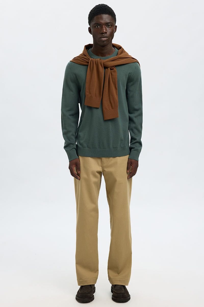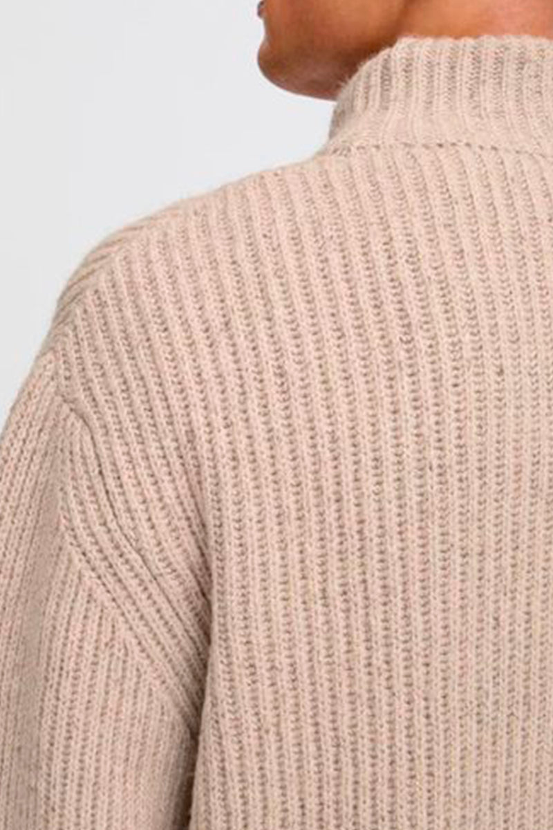 The first, and perhaps the most important knit sweater to mention is the simple, classic pullover sweater with a round neck and long sleeves, which never really goes out of style. It comes in many different colors and shades and is also designed in patterned models, giving it a slightly different expression. At 2trendy, you'll find a wide range of pullovers from well-known brands like Selected, Clean Cut, Jack and Jones, and Kronstadt.