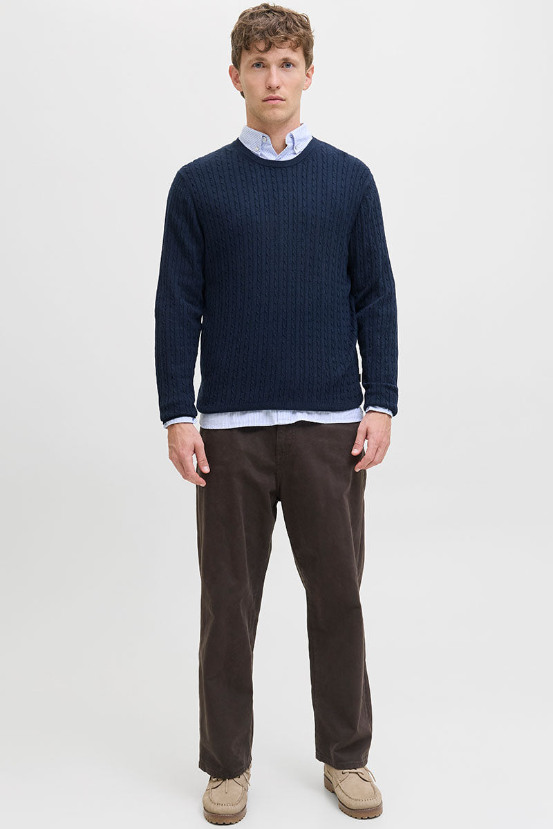 A knit pullover is highly versatile and can be used year-round. It's not too thick for a summer evening, and at the same time, it can easily serve as the top layer in winter when you need more warmth. A pullover can be super practical over a t-shirt, which, paired with a pair of jeans, gives it a very casual look. It can also be part of a more formal outfit with a shirt underneath—this is where the sweater truly shines with the shirt's collar and sleeves adding an edge to the outfit. Paired with a pair of chinos and loafers, the style becomes complete and can be worn for a business meeting or a family gathering. You can still maintain the casual look with a shirt underneath by, for example, adding a leather jacket and a pair of distressed jeans.