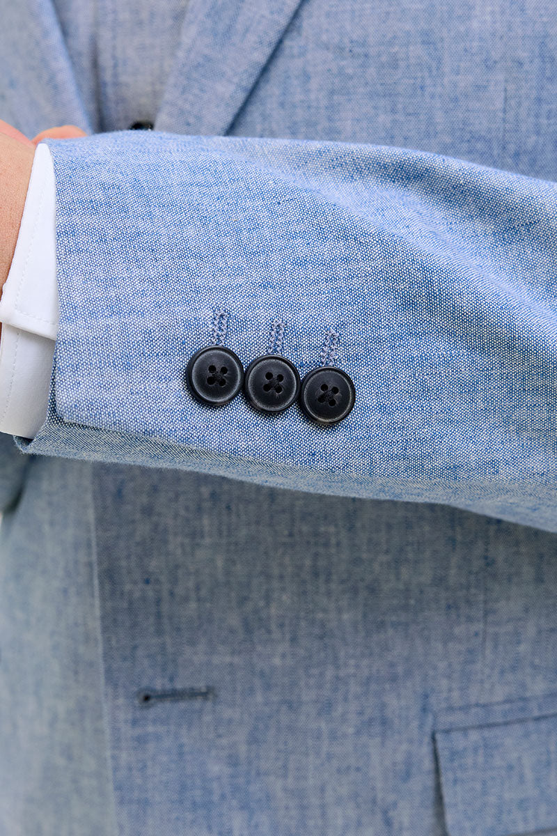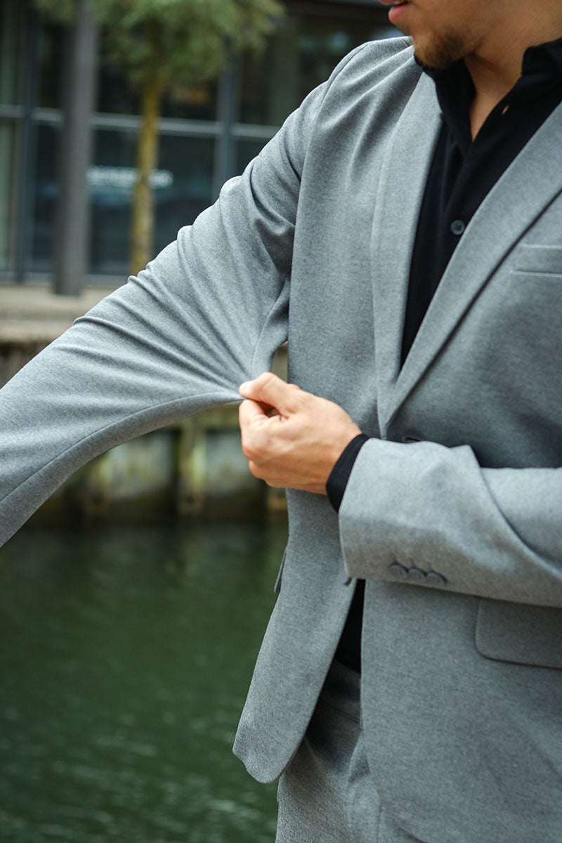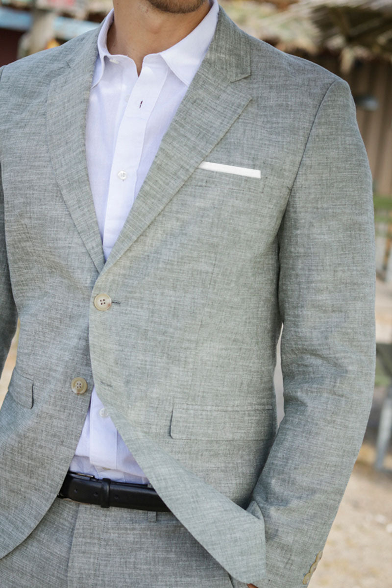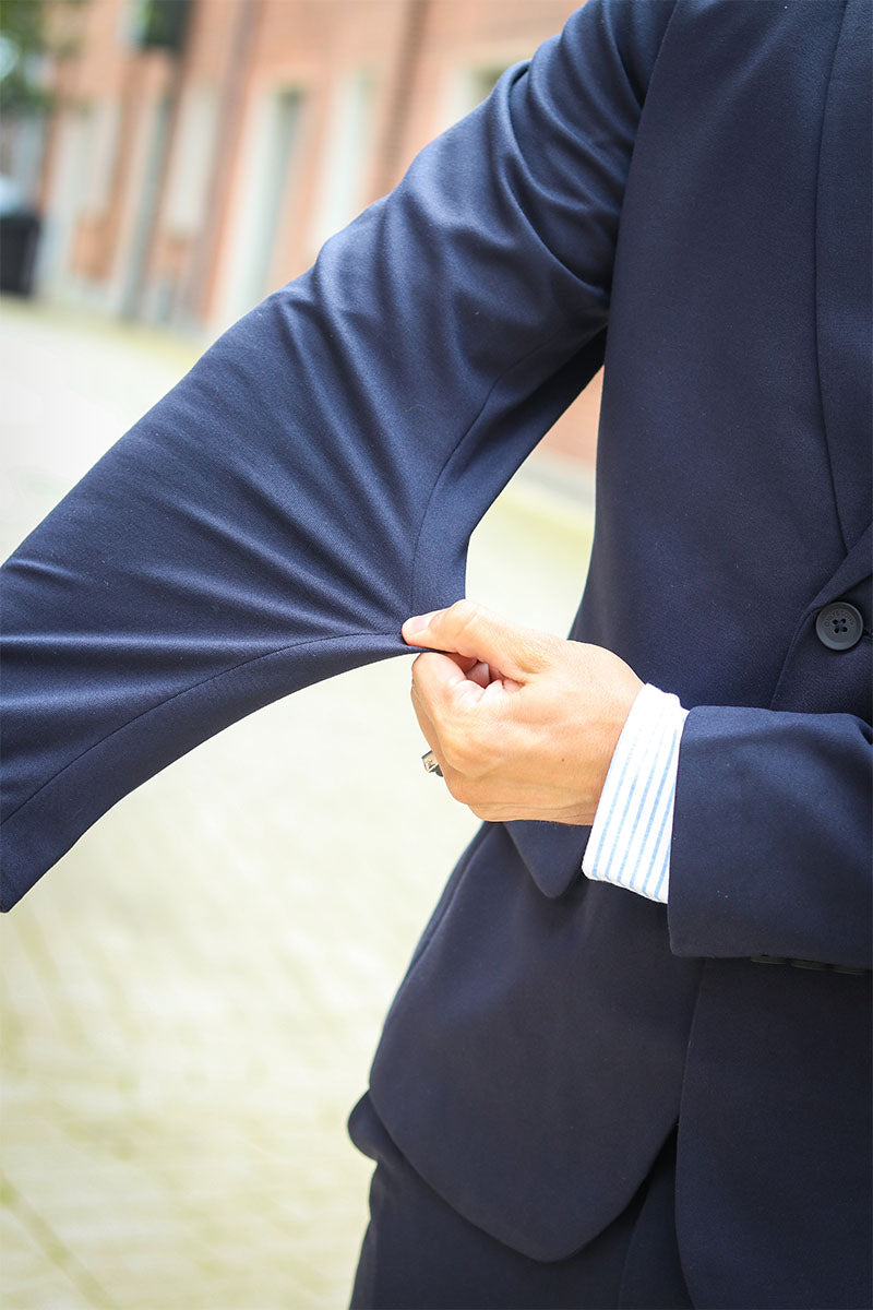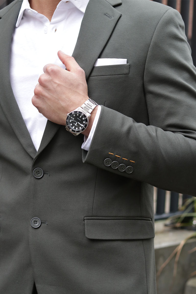2. Fit: Pick a suit that fits your body, and let the sleeve stop at your wrist.