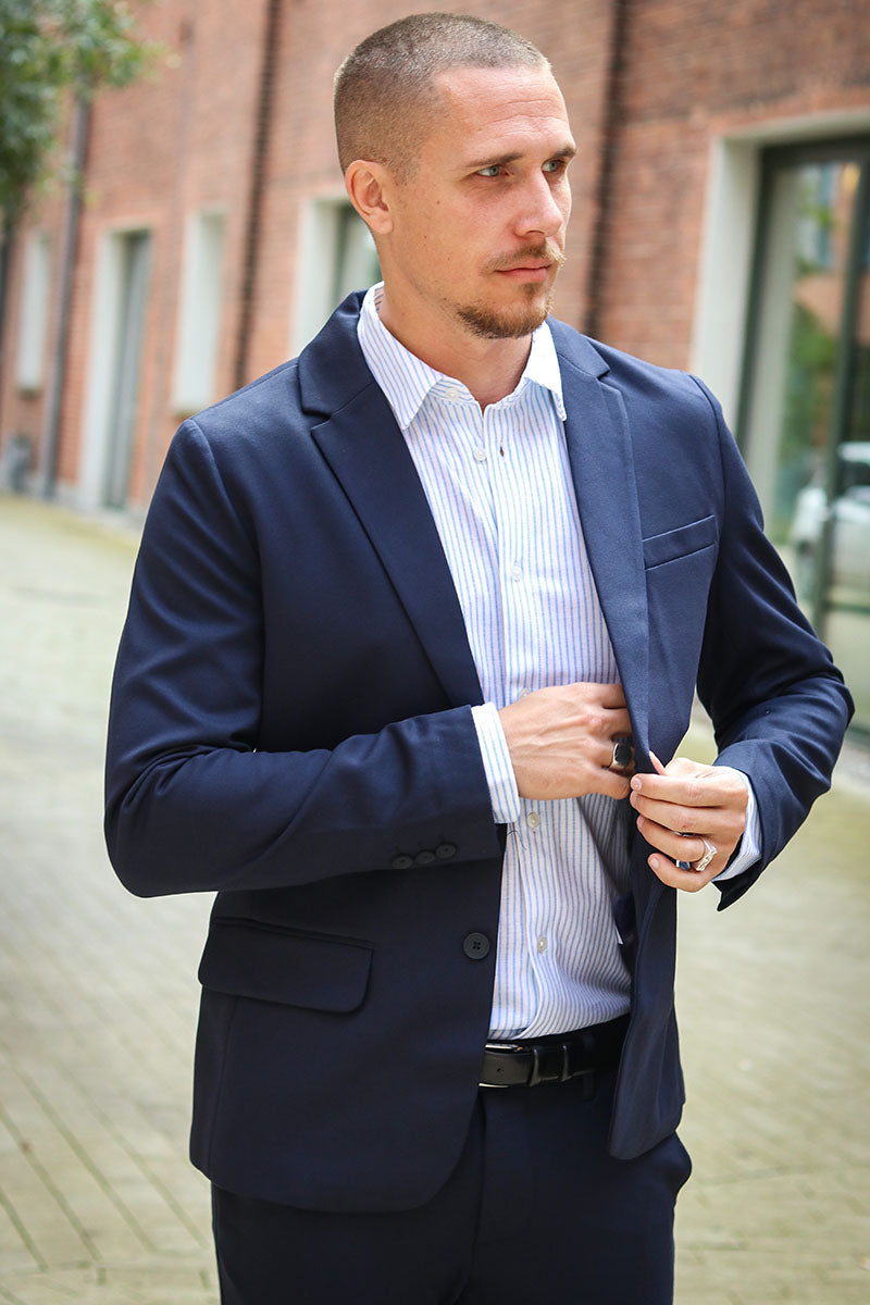 The perfect fit of the suit depends on your body composition. If you’re more on the slim side, a slim fitting suit will look great on you. If you have a wider silhouette, a more wide fitting suit will be great. However, no matter which suit you chose, you can’t go wrong with shopping at 2Trendy. You can also always take the suit to a tailor if adjustments are needed. One of the things that will leave you looking really good, is when the sleeves of the blazer go down to around your wrist, leaving approximately a centimeter of space for the shirt to show. This will make you look extraordinary and classy. You can also play around with the length of the pants. In modern times, shorter pants combined with loafers have been really popular. However, if you want the true classy look, pants in regular length with a pair of dress shoes is the way to go.