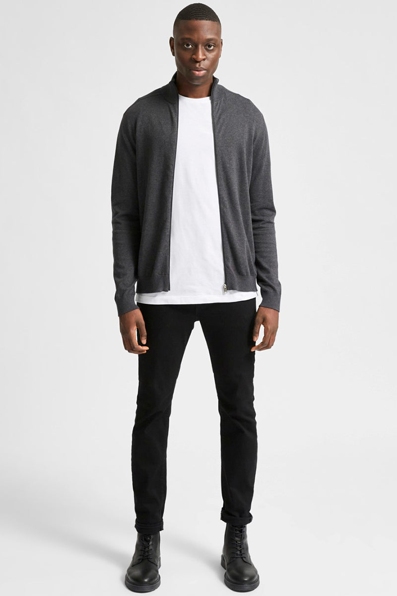 Selected BERG FULL ZIP CARDIGAN Antracit Melange