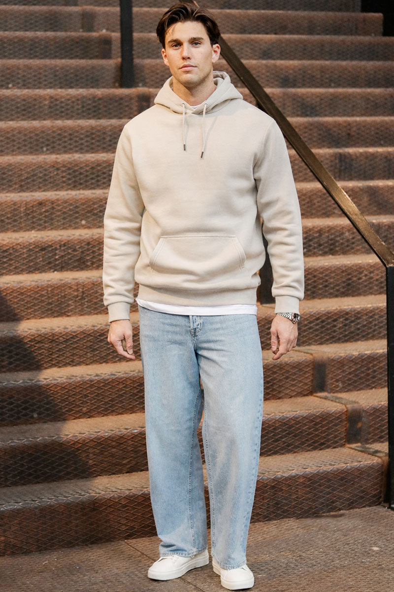 This hoodie offers a regular fit and long sleeves, perfect for layering in cooler weather. Its brushed inside provides a super soft feel that ensures comfort and warmth throughout the day. Designed with a kangaroo pocket and a hooded neckline, it combines practicality with casual style.
