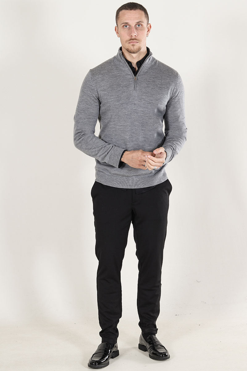 Tray LS Merino Knit Half Zip Medium Grey Melange
