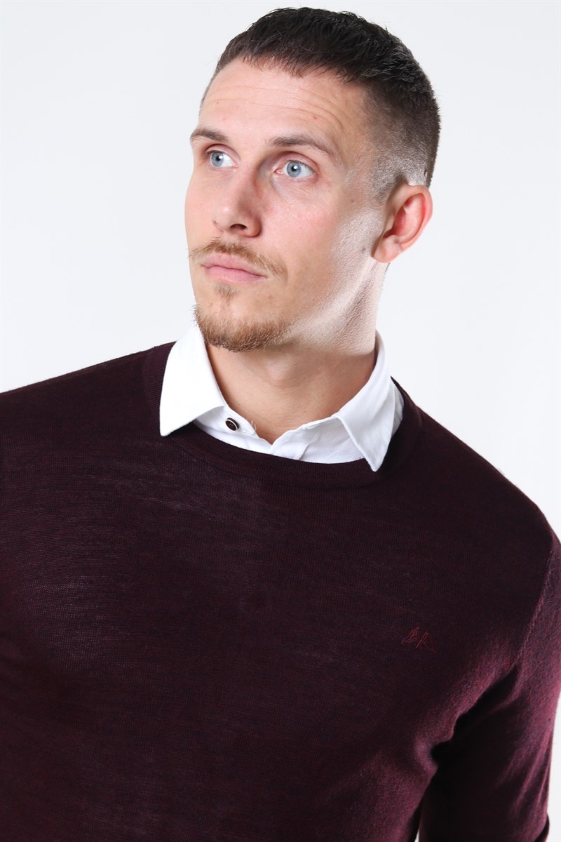 Lindbergh Merino O-Neck Strik Dark Bordeaux