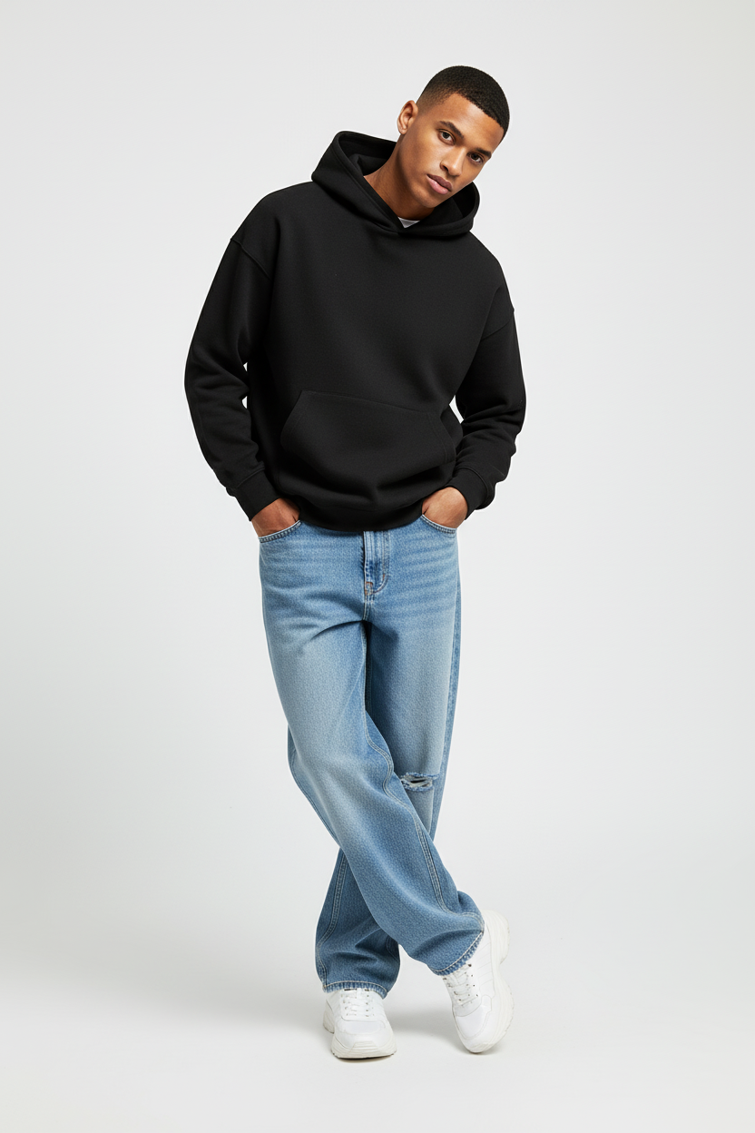 The regular fit is undoubtedly what you're familiar with, allowing you to breathe and wear a T-shirt underneath without it being too loose around the waist. This fit is great if you want a hoodie that you can wear for various occasions and with different pants.
